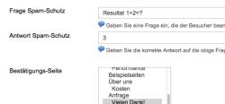 - Frei konfigurierbare Spam-Schutz Frage/Antwort (Captcha) zur Abwendung von unerwünschten E-Mails.