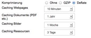 Dieses Prinzip, kombiniert mit den ausgeklügelten Konfigurations-Möglichkeiten für die Komprimierung von HTML (minifying), der Datenübertragung (gzip oder deflate) sowie Browserseitigem Caching (expire), gewährleisten eine maximale Geschwindigkeit beim Surfen auf Ihrer Homepage.
